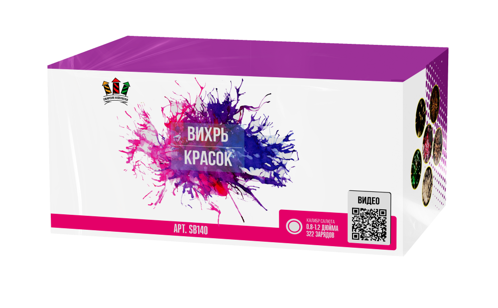 SB140 Сибирь Вихрь красок 322 x 0,8-1,2 (веер)1/2 купить оптом, поставщик салютов и фейерверков
