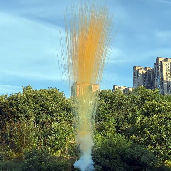 СУ0100312О Пирофф Дневная батарея салютов оранжевая 7 x 1,2 (треск) 15/1 купить оптом, поставщик салютов и фейерверков