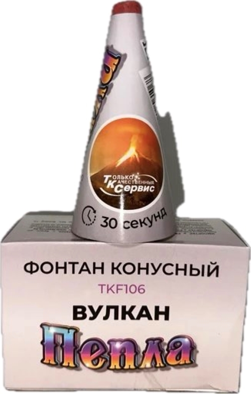 TKF106 ТК Сервис Конусный фонтан "Вулкан пепла" (серебрян. искры + золотой треск) 72/2/1 купить оптом, поставщик салютов и фейерверков